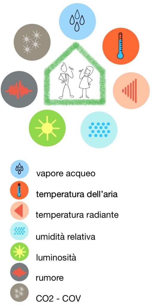 Abbiamo bisogno di confort ambientale e abitativo. Le stanze devono avere la giusta luce naturale e aerazione, qualità dell’aria, insonorizzazione, la giusta umidità relativa. Gli ambienti devono consentire lo svolgimento di attività diverse con dimensioni e mobilio che ne permettano l’adattamento ai vari utilizzi. Gli impianti di climatizzazione, aerazione, illuminazione, alimentazione elettrica delle utenze, linea dati e wi-fi, insieme all’involucro edilizio, oltre a garantire il confort, devono garantire anche di poter interagire con il resto del mondo. Dobbiamo poter svolgere attività lavorative, di studio, di interazione con le amministrazioni, con le banche, ecc. Dobbiamo poter fare da casa tutte quelle attività che la tecnologia ci consente di svolgere senza essere presenti.